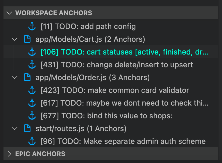 Плагин Comment Anchors подсвечивает подобные спец–пометки в комментариях, а также собирает их на дополнительной вкладке слева, чтобы всегда был быстрый способ перепрыгнуть к незаконченной фиче, внести некоторые исправления или разрешить уже наконец этот TODO.