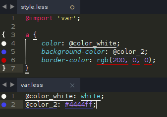 Плагин для подсветки цвета. Поддерживает форматы - html named color, hex, rgb, rgba. У этого плагина есть еще одна приятная фишка - он поддерживает правильную подсветку переменных содержащих цвет (например в less)